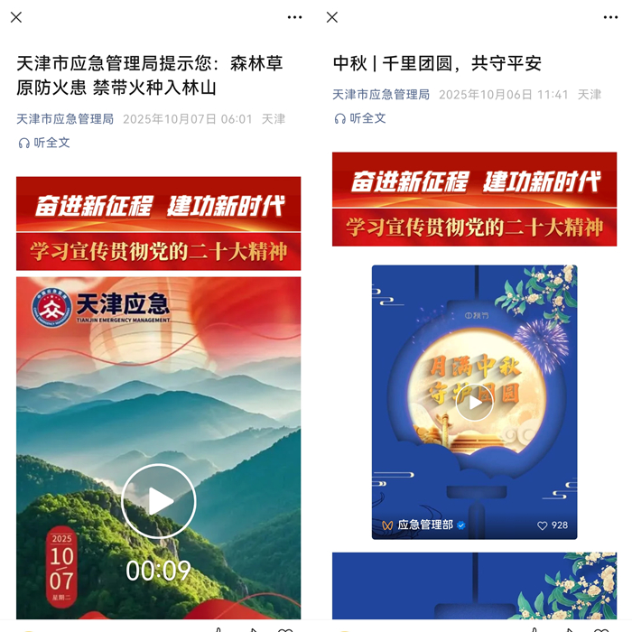 丰富线上宣传内容。市应急管理局通过市民群众喜闻乐见的形式,在微信公众号、微信视频号、微博号、抖音号、头条号等新媒体,每天发布推送安全生产、森林防火、消防、用电、用气等各类应急常识、安全提示、案例警示,结合天气变化,及时发布气象灾害预警预告和警示提示,通过广泛开展应急安全知识宣传,切实提升社会大众的安全防范意识,增强自救避险的能力素质。策划制作8幅国庆中秋假期主题宣传海报,每天通过局新媒体平台进行安全提示,传播安全过节理念。