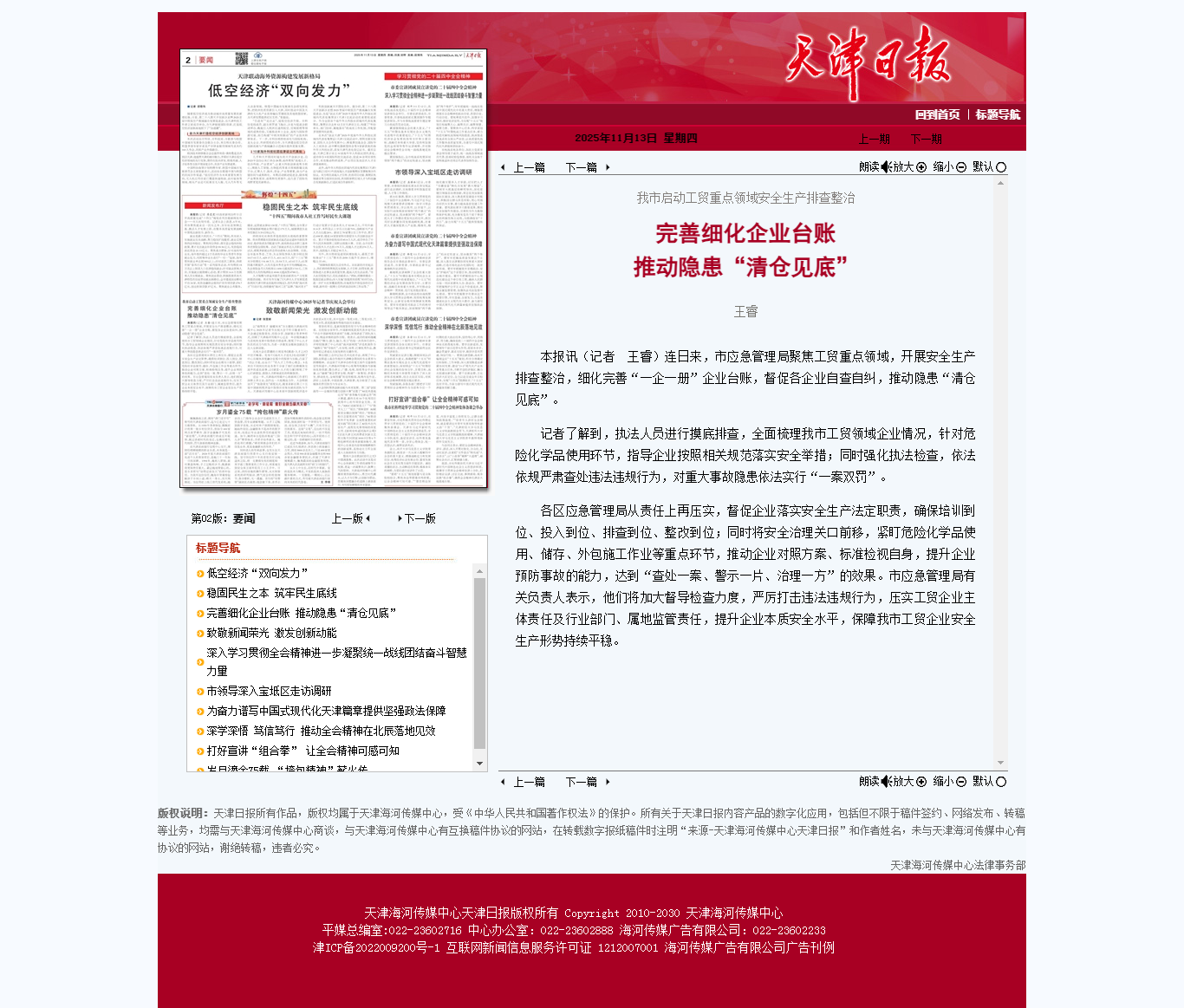 【天津日报】完善细化企业台账 推动隐患“清仓见底”